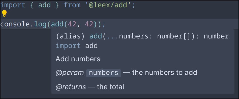 JSR builds your package with TypeScript type definition files (.d.ts) and can generate documentation based on JSDoc comments.